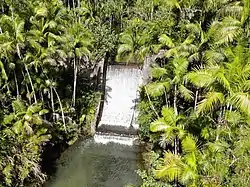 The Fonte River Dam is a historic dam on the Fonte River on the island of Guam. It is located in the upper third of the river's main valley, which is located between Nimitz Hill Annex and Agana Heights, and lies below and west of the Libugon scenic overlook on Nimitz Hill. The dam, built in 1910, was part of the first organized effort by the United States Navy to provide a reliable water supply to the island's major settlement, Hagåtña (formerly Agana). It is a concrete structure 150 feet (46 m) long, 24 feet (7.3 m) high, and has a 17 feet (5.2 m) base. It is almost complete obscured by jungle overgrowth.[2]