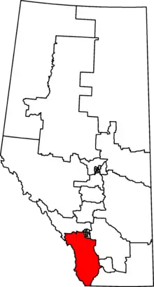 | Census subdivision(s) | Cardston, Claresholm, Crowsnest Pass, Foothills No. 31, High River, Okotoks, Pincher Creek, Pincher Creek No. 9, Rocky View, Willow Creek No. 26 | ||