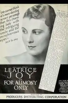 For Alimony Only is a 1926 American silent drama film directed by William C. deMille and starring Leatrice Joy, Clive Brook, and Lilyan Tashman.[1]