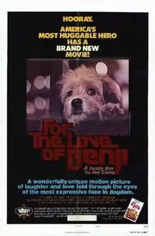For the Love of Benji is a 1977 family film, directed and written by Joe Camp. It is the sequel to the original film, featuring Benji, and the second film in the Benji series, released on June 10th, 1977. It is the first Benji film to star Benjean, Higgins' daughter.