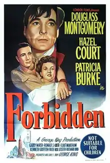 Forbidden (a.k.a. Scarlet Heaven ) is a 1949 British thriller film, produced and directed by George King, and starring Douglass Montgomery, Hazel Court and Patricia Burke.[2] King's last production both as independent producer and as director, it also features the final screen appearance by Montgomery.