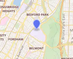 Adjacent to the church is the Fordham University Cemetery, where the university's original nineteenth-century Jesuits, diocesan seminarians, students, and workers are interred;[5] the original cemetery had been located on property that now belongs to the New York Botanical Garden, and the graves were relocated to their current location in 1890.[6]