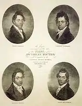 Henry Opukahaia, the school's first pupil, was an 18-year-old Native Hawaiian who had been working as a sailor on a US merchant ship but was abandoned in 1810 in New Haven, Connecticut by his ship. He traveled widely to promote the school, but died in Cornwall in 1818 at 26 before he could return home. He recruited four more Hawaiians, including one known as George Prince, who reportedly had fought in the War of 1812. The school printed a pamphlet with their stories to raise money.[7] Samuel F. B. Morse, son of Jedidiah, painted their portraits. Other students came from distant countries, as well as several Native American tribes, primarily from those east of the Mississippi River.[6] Some 24 different native languages were spoken at the school.[5]
