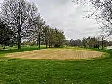 Between 2001 and 2004, the three courses and the clubhouse were rebuilt under the direction of course designer Stan Gentry.[61] The rebuilding project initially was funded by St. Louis developer Norman Probstein with a gift of $2 million, followed by donations of $2 million from Eagle Golf, $2.4 million from the Danforth Foundation, $4.5 million from Forest Park Forever, and $1.6 million from the city of St. Louis.[62] The three rebuilt courses are named for trees in St. Louis: the Hawthorn is a relatively flat and walkable layout; the Dogwood is a somewhat hilly course with a water fairway; and the Redbud is very hilly and the most challenging layout of the three.[62] One glass-enclosed clubhouse serves all three courses, and it includes a restaurant open to all park users known as Ruthie's Grill.[62] After the completion of the renovations, the Forest Park Golf Course was named the Best Golf Course in St. Louis by the local alternative newspaper, the Riverfront Times.[63]