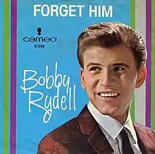 "Forget Him" is a song written by Tony Hatch and released in 1963 by Bobby Rydell. The song spent 16 weeks on the Billboard Hot 100 chart, peaking at No. 4 on January 18, 1964,[4] while it spent 14 weeks on the United Kingdom's Record Retailer chart, reaching No. 13.[5] The song also reached No. 3 on Billboard's Middle-Road Singles chart,[6][7] No. 3 on Canada's CHUM Hit Parade,[8] No. 8 on the Irish Singles Chart,[9] and No. 2 in Hong Kong.[10]