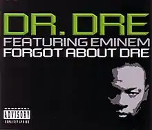 "Forgot About Dre" is a single from rapper-producer Dr. Dre's album 2001, featuring vocals from rapper Eminem. The track reached No. 25 on the Billboard Hot 100, No. 14 on the U.S. R&B chart, No. 32 on the U.S. Pop chart, and No. 7 on the UK Singles Chart. Released as the album's second single on January 29, 2000,[1] like "Still D.R.E." and Eminem's song "Without Me", the song defiantly addresses Dre's critics as Dre announces his return to the hip-hop scene and reminds listeners of his significant influence on the genre. "Forgot About Dre" won Best Rap Performance by a Duo or Group at the 2001 Grammy Awards.[2] It samples the No Doubt song "The Climb". Eminem performed a brief portion of the song during the Super Bowl LVI halftime show on February 13, 2022.
