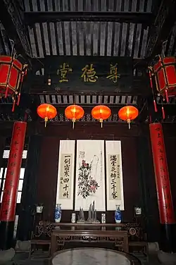 The Former Residence of Zhang Jingjiang (simplified Chinese: 张静江故居; traditional Chinese: 張靜江故居; pinyin: Zhāng Jìngjiāng Gùjū), also known as Hall of Zunde (Chinese: 尊德堂; lit. 'Hall of Respecting Moral Character'), is the birthplace and former residence of Zhang Jingjiang, one of the "Four Elder Statesmen" of the Kuomintang.[1][2]