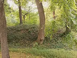 With the exception of those that construction of 24th Street North removed, the earthen remains of the lunette survive largely intact within Arlington County's Fort C.F Smith Park.[4][11] Gun platforms 8-11 are clearly visible, as is a well. The fortification contains bastions that are unusual within lunettes. The ammunition magazine is also still visible, as is the bombproof area. Soldiers would use the bombproof if they were under siege, as it functioned as a traverse that localized the effects of shell bursts. Parapets, which protected the soldiers from fire, and the gorge, which protected soldiers from flanking fire, also remain visible.[4]
