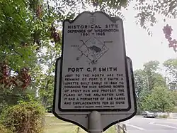 Fort C.F. Smith was a lunette that the Union Army constructed in Alexandria County (now Arlington County), Virginia, during 1863 as part of the Civil War defenses of Washington (see Washington, D.C., in the American Civil War).[3][4][5][6] It was named in honor of General Charles Ferguson Smith, who died from a leg infection that was aggravated by dysentery on April 25, 1862.[7] Fort C. F. Smith connected the Potomac River to the Arlington Line, a row of fortifications south of Washington, D.C., that was intended to protect the capital of the United States from an invasion by the Confederate States Army.[4]