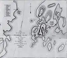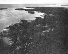 A lime quarry and kiln is located south of the town; this location was likely used to produce mortar for the chimneys. A saw mill was also located north of the town; this may or may not have been contemporaneous with Fort Drummond, but evidence of sawn logs in the fort buildings was confirmed.[12] Some of the islands in Whitney Bay were also used by the fort, with the fort surgeon living on one and another used for artillery target practice.[17]