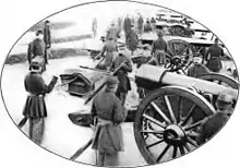 Following the surrender of Fort Sumter in Charleston, South Carolina, on April 14, 1861, new American president Abraham Lincoln declared that "an insurrection existed," and called for 75,000 troops to be called up to quash the rebellion.[3] The move sparked resentment in many other southern states, which promptly moved to convene discussions of secession. The Virginia State Convention passed "an ordinance of secession" and ordered a May 23 referendum to decide whether or not the state should secede from the Union. The U.S. Army responded by creating the Department of Washington, which united all Union troops in the District of Columbia and Maryland under one command.[4]