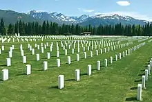 Fort Richardson National Cemetery is a United States National Cemetery located on the Fort Richardson United States Army installation near Anchorage, Alaska. It encompasses 39 acres (16 ha) and as of the end of 2020, it had more than 8,000 interments. For much of the year, the gravesites are inaccessible due to snowfall.