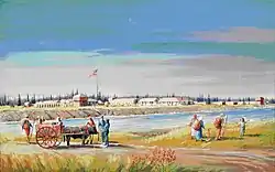 In 1853 the Isaac Steven's Railway Survey passed through the Fort Ripley Reservation.[13] It wouldn't be until the 1880s a rail line was constructed through the former fort's lands. The St. Paul and Pacific Railroad had held the right of way for many years, but it would be the Saint Paul, Minneapolis and Manitoba Railway that laid the track.