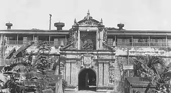 In 1714, the ornate gate of Fort Santiago was erected together with some military barracks.[9] The Luzon earthquakes of 1880, which destroyed much of the city of Manila, destroyed the front edifice of the fort changing its character.