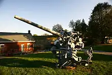 After the American entry into World War I in 1917, Battery Bell's 5-inch guns were removed for potential service in France as field guns on wheeled carriages. Most of the 5-inch guns removed under this program were sent to France with the 69th Artillery Regiment of the Coast Artillery Corps. However, the regiment did not complete training before the Armistice and did not see action.[13] The 5-inch guns were never returned to the forts and were scrapped circa 1920. Prior to 1922 one 12-inch gun at Battery Gansevoort was dismounted; this may have been in 1917–18 as potential railway artillery.[14] At some time, probably in 1918-1920, a battery of two 3-inch antiaircraft guns was built at the fort.[3] In 1920, with the war over, Battery Beecher's 3-inch guns were scrapped as part of a general removal from service of the M1898 3-inch gun. The 10-inch guns of Battery Hazzard followed in 1930; the reason for this is unclear. In 1934 the fort was disarmed and turned over to the state. All of the Endicott-era batteries were demolished in the 1950s.[15]