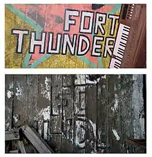 Fort Thunder (1995–2001) was a warehouse on the second floor of a pre-Civil War former textile factory in the Olneyville district of Providence, Rhode Island. From 1995 through 2001, the space was used as a venue for underground music and events, as well as a living and working space for the artists. Fort Thunder was started by Mat Brinkman and Brian Chippendale, who were the space's original residents along with Rob Coggeshal and Freddy Jones.[1] Fort Thunder was known for its colorful posters promoting shows posted on walls around Providence. At various times they hosted costumed wrestling and Halloween mazes. The group of artists who lived and worked there is also sometimes referred to as "Fort Thunder."