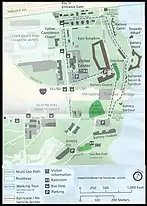 A 2020 article about the property provided additional specifics. Battery Weed and Fort Tompkins "are well maintained and partially occupied by the Coast Guard, Army Reserve, and Park Police, other sections are abandoned and remain off-limits to the public".[16]