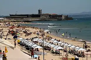 At the beginning of the Peninsular War French Napoleonic troops under the command of General Jean-Andoche Junot reached the limits of Lisbon on November 30, 1807. The fort was transformed into barracks for the French occupation troops under the command of General Jean-Pierre Travot, while the bar of the Tagus River was blocked by the British navy in support of the Portuguese. The fort passed into British hands following the Sintra Convention, on 2 September 1808. In 1809 it was earmarked as the evacuation point for British troops under the command of Arthur Wellesley, 1st Duke of Wellington in the event that British and Portuguese troops were unable to repel a further French invasion. The fort was protected by a series of military works constructed under Wellington's orders and collectively known as the third line of the Lines of Torres Vedras.[1][5] In 1831, during the Portuguese Civil War (1828-1834), it was the target of artillery fire from the French fleet under the command of Admiral Albin Roussin.