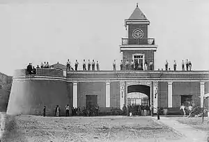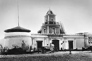 The Fort of Santa Catalina (Spanish: Fuerte de Santa Catalina) in Lima, Peru, is a Neoclassical style building that partly survives and it is in a good condition, and it is one of the few examples representative of the military colonial architecture that still exists in Peru. It dates to the 1800s decade and was built on a land called "Huerta de los Llanos" and "Huerta Perdida" or that of the "Cuero", which belonged to the Monasteries of Santa Catalina de Siena[1] and de la Concepción respectively. The property is registered as property of the Peruvian State in the Margesí of National Heritages: Asiento 12, Foja 37, Volume I of the Book of Properties of Lima having, at present, a total area of 25,250 square meters. The Liman traditionalist Ricardo Palma, in one of his tradiciones peruanas, affirms that during the Viceroy Gabriel de Avilés's government the factory of the Barracks of Santa Catalina was started for an artillery barracks, under the direction of the then colonel, and later Viceroy, Don Joaquín de la Pezuela.[2]