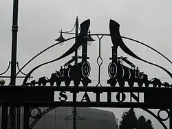 Foster, Rastrick and Company's locomotives commemorated in a sculpture above the subway leading to Stourbridge Town Station