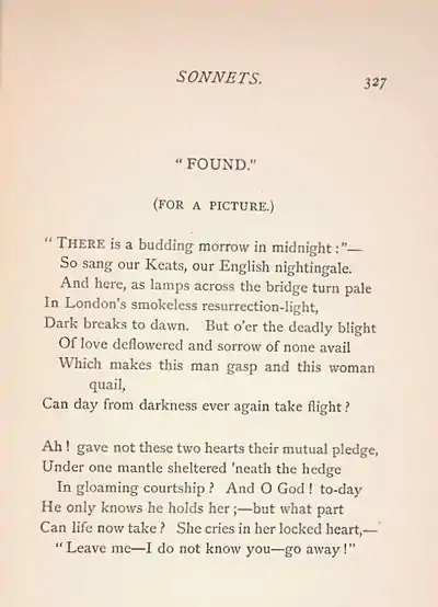 Rossetti published a poem, also titled "Found", as a companion to the painting in 1881 in the volume Ballads and Sonnets.