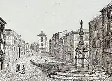 This was none other than the Mariblanca, the famous white marble statue, possibly a representation of Venus, which was imported from Italy in 1619 and now is in the Casa de la Villa, after suffering all kinds of avatars and numerous moved.[1]
