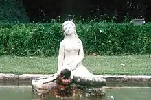 The Fountain of the Mermaid of Lleida is a fountain located in the Parc des Champs Elysees in Lleida, Catalonia, Spain. It features a mermaid holding in a hand a conch, which released the water. The fountain is surrounded by a garden.