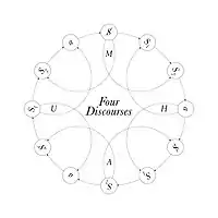 Four discourses is a concept developed by French psychoanalyst Jacques Lacan. He argued that there were four fundamental types of discourse. He defined four discourses, which he called Master, University, Hysteric and Analyst, and suggested that these relate dynamically to one another.[1]