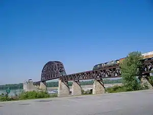 Built by the Louisville Bridge Company and completed in 1870,[1][2] the bridge was operated for many years by the Pennsylvania Railroad, giving the company its only access to Kentucky. Ownership of the railroad and the bridge passed on to Penn Central and later Conrail, which then sold the line from Louisville to Indianapolis, Indiana to the Louisville and Indiana Railroad, the current bridge owner.