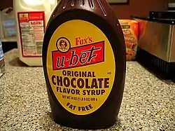 Fox's U-bet chocolate syrup is a commercial chocolate syrup originally made by H. Fox & Company in Brooklyn, New York starting in 1900.[1] The product is most associated with the egg cream fountain beverage. H. Fox & Company was acquired by US Westminster Foods in 2016.[2]