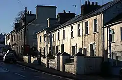 Today, the most prominent feature in the village is the Victoria Clock Tower, built and paid for by the Isle of Man Mining Company.[5] Designed by Foxdale mine engineer John Nicholls the structure is 40 ft (12.2 m) in height and is visible across the valley.[6] The Dedication Ceremony took place on Thursday 16 May 1901 and was an occasion of immense civic pride for the village of Foxdale.[5][6]