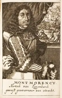 François Henri de Montmorency-Bouteville, Duke of Piney-Luxembourg, commonly known as Luxembourg (8 January 1628 – 4 January 1695), and nicknamed "The Upholsterer of Notre-Dame", was a French general and Marshal of France. A comrade and successor of the Great Condé, he was one of the most accomplished military commanders of the early modern period and is particularly noted for his exploits in the Franco-Dutch War and War of the Grand Alliance. Not imposing physically, as he was a slight man and hunchbacked, Luxembourg was nonetheless one of France's greatest generals. He never lost a battle in which he held command.[1]
