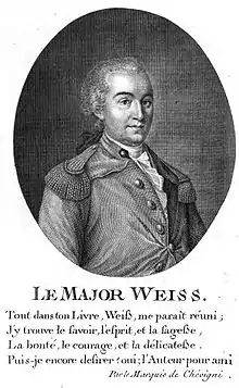 François-Rodolphe de Weiss (von Weiss, also von Weiß, surname at birth Wyss) (1751–1818) was a Swiss political and military leader, writer and philosopher, a follower of Jean-Jacques Rousseau.