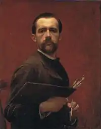 In 1879, on Ravier's recommendation, he was enrolled in the class of Michel Dumas, a former student of Ingres, who schooled him in the Classical tradition. With the support of Édouard Aynard, director of the museum commission, and Antonin Dubost, the Deputy from Isère, Guiguet went to Paris to complete his studies at the École des Beaux-arts, where he worked in the studios of Alexandre Cabanel.[1] While there, he also became a friend of Puvis de Chavannes and Félix Thiollier, who also had a great influence on his work, despite not being a painter. Guiguet made his debut at the Salon in 1885.[1]