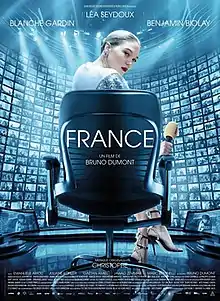 France is a 2021 internationally co-produced drama film, written and directed by Bruno Dumont. It stars Léa Seydoux, Blanche Gardin, Benjamin Biolay, Emanuele Arioli, Juliane Köhler, Gaëtan Amiel, Jewad Zemmar and Marc Bettinelli.