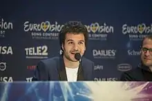 Amir took part in technical rehearsals on 6 and 8 May, followed by dress rehearsals on 9, 13 and 14 May.[21] This included the semi-final jury show on 9 May where an extended clip of the French performance was filmed for broadcast during the live show on 10 May and the jury final on 13 May where the professional juries of each country watched and voted on the competing entries.[22] During the opening ceremony festivities that took place on 8 May, Amir took part in a draw to determine in which half of the final the French entry would be performed. France was drawn to compete in the first half.[23] Following the conclusion of the second semi-final, the shows' producers decided upon the running order of the final. The running order for the semi-finals and final was decided by the shows' producers rather than through another draw, so that similar songs were not placed next to each other. France was subsequently placed to perform in position 11, following the entry from Germany and before the entry from Poland.[24]