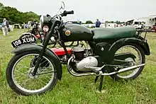 • 1939/1949 – Powerbike J50G pre-war, K50H post-war, Auto-cycle 98cc Junior Villiers engine, early models were unsprung, Junior Villiers Deluxe engine introduced in 1940 with sprung forks, ( a letter H after the frame number means that Harwii hubs instead of British are fitted),[34] colour black with silver or maroon tank or all black, Deluxe in all green – Production stopped in 1940, resumed in 1945:[35]