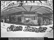 SLNSW 11535 Fred Loudons motorcycle shop with FrancisBarnett motorcycles corner Elizabeth and Goulburn Street