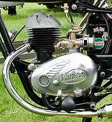 Continuing with cost factors and simplicity in mind the new wheels of the new Francis Barnet were on spindles and easily removed. The 147cc Villiers two-stroke engine with flywheel magneto was light with a two speed Albion gearbox, a three speed was an option, and very easily reassembled and at a very low cost. The construction came with a no breakage forever guarantee. Other 250cc and 350cc machines were also produced with a sidecars as an option. The Pullman model followed in 1928 with a 344cc vertical in-line two-stroke Villiers engine. From 1928 to 1930 the black motorcycles followed the fashion and were coloured cream. They reverted to black in 1931 and to Arden Green around 1947.[18]