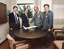 From the beginning, a partnership with IBM was key to Dassault Systèmes' success. IBM ensured the entire marketing of CATIA. Getting CATIA enter the IT leader’s catalogue demanded a huge effort.[13] The qualification process, which began in 1980, took several months. Competition against other software options was fierce. But "IBM had identified CADAM's shortcomings and was looking for a product for its catalogue that would complement it, particularly in the field of three-dimensional representations. After a long and thorough analysis by IBM technicians assigned at Dassault in its CADCAM center in Saint-Cloud, CATI was selected against its competitors, respectively presented by Northrop, and by Nissan.”[14]