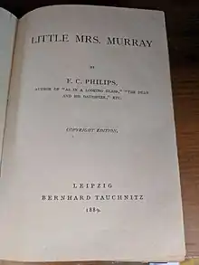 Francis Charles Philips (3 February 1849 – 21 April 1921) was a British army officer, actor, theatre-manager, dramatist, barrister, journalist, short story writer and novelist.[1] He wrote over forty novels and over a dozen plays.