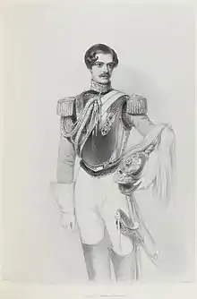 On 21 September 1820, Conyngham purchased a cornetcy in the 22nd Light Dragoons,[6] but this appointment did not take place, and he was replaced by his brother Lord Albert Conyngham,[7] after he was appointed, without purchase, to be cornet and sub-lieutenant in the 2nd Regiment of Life Guards on 23 April 1821.[8] He purchased a lieutenancy in the 9th Light Dragoons on 24 October 1821,[9] and on 13 December, he exchanged from the half-pay of the 9th Light Dragoons into the 1st Regiment of Life Guards.[10] He exchanged again, into the 17th Light Dragoons, on 3 April 1823,[11] and purchased an unattached captaincy on 12 June 1823.[12] Mount Charles, as he then was, entered the Ceylon Regiment, and purchased an unattached majority on 2 October 1827.[13] He became a Major-General in 1858, a Lieutenant-General in 1866 and a full General in 1874.[1]