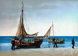 Two pinks on the beach of Scheveningen, Netherlands (photochrom, c. 1900)