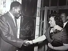 After graduation, she had a lengthy diplomatic career, representing Guatemala in Greece, Israel and Costa Rica.[1] She was the first female ambassador of Guatemala[10] and was listed as the Chargé d'affaires to Israel in 1956 in the government yearbook.[11] While serving as ambassador in 1959, she helped musician Jorge Sarmientos launch his international career,[12] and in 1960 she met Golda Meir.[13] She attended and spoke on "the current status of engineers and scientists" at the first International Conference of Women Engineers and Scientists in New York in 1964.[14] In 1975 Fernández-Hall transferred to Costa Rica,[15] where she served until 1981.[16] While in Israel, she served as Dean of the foreign diplomatic corps.[17]