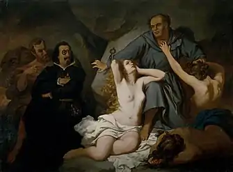 His father was a navigator in the Royal Spanish Navy. He attending the Escola de la Llotja from 1850 to 1855, where he originally studied silversmithing (following the wishes of his family) but decided to pursue painting instead.[1] The following year, he went to Paris to continue his studies with Thomas Couture and Horace Vernet.[2] In 1858, he won a medal at an exhibition in Rome for his portrayal of Francisco de Quevedo seeing Martin Luther in Hell.[1] After that, he decided to specialize in painting historical scenes. In 1865, he returned to Spain and was commissioned by the Diputació de Barcelona (a local government agency) to portray General Juan Prim in battle during the Hispano-Moroccan War.[2]