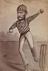 In February 1869, in his second intercolonial contest, Allan formed a bowling attack with Victorian captain Tom Wills that obliterated the New South Wales batsmen with 8/20 in the first innings and 7/44 in the second innings respectively, securing Victoria's 78-run win.[13] Allan's successes in intercolonial cricket earned him the sobriquet "the bowler of a century".[14]