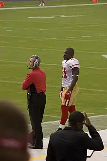 During the offseason, the 49ers hired Jim Harbaugh to be their new head coach and built themselves around a combination of a great running game, a supplemental passing game and a power house defense.[104] This combination proved to be effective for Gore and the 49ers, leading them to a 13–3 record in the regular season and a playoff spot for the 49ers, their first such appearance since 2002 along with a first round bye.[105][106]