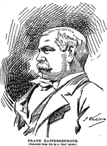 Happersberger's father, Frank Happersberger Sr, was a Bavarian immigrant who moved from New York to San Francisco to join the Gold Rush.[2] In his youth, Frank Jr. worked for the San Francisco firm of Kemp and Hoffman as a wood-carver.[2] For eight years, he studied at a German art academy, and while still in Europe he entered and won a competition to build a monument to the assassinated James A. Garfield.[2] The Garfield sculpture was completed in 1885, and established Happersberger's reputation.[2]