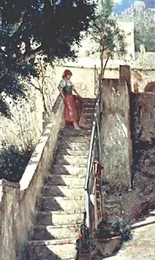In the late 1870s, he purchased a villa[1] or the former Santa Teresa monastery at Anacapri on the island of Capri, where he made portraits of local model Rosina Ferrara and became a friend of John Singer Sargent.[3] In 1914, he wrote the article Island of the Sirens about Capri for the International Studio about the allure of the people, culture, and island for artists over the years.[4] It was one of many travel articles written by Hyde.[2][5]