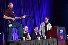 For the Forces of Corruption expansion pack, he took greater creative liberty with the Star Wars feel by writing an original theme for the new criminal faction.[25] In attempting to compose this piece, he wrote several preliminary hooks that were later integrated into the game's battle themes.[38] He composed six pieces for the expansion total, including the finale theme. In line with the criminal theme of the game, Klepacki borrowed motifs and recreated the mood from scenes involving Jabba the Hutt in Return of the Jedi.[39] His score for the expansion pack was accepted upon first submission to LucasArts.[39] As Petroglyph's audio director, he also selected sound effects—a tricky process due to the issue of making the criminal faction's sounds a "little different, without straying too much from the original signature sounds."[38] Klepacki worked with LucasArts to select voice actors, and contributed his own talents to the role of IG-88 and other minor characters.[38] A blooper reel of his voice acting was released on Petroglyph's forums after the one-thousandth member registered.[40] Klepacki was contacted to score Command & Conquer 3, but was too busy with duties at Petroglyph and declined to mention the offer publicly.[5][6] Electronic Arts hired Steve Jablonsky to score the game;[41] an EA community manager at C&C 3's forums suggested that the audio team studied Klepacki's music and tried to recreate his style.[42] Klepacki feels that Command & Conquer is a significant part of his life and that he would like to return to the Tiberian era.[8] He conceded that employment at Petroglyph games would probably prevent him from working with Electronic Arts.[6] Years later in 2018 he would have that opportunity due to EA partnering with Petroglyph to remaster the games since many of the former developers from Westwood Studios had started, and continue to work at, Petroglyph.[43]